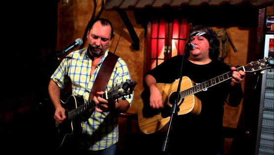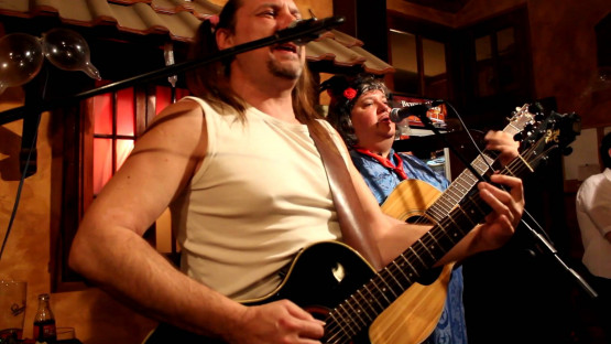 Двамата свирят китара и пеят.
